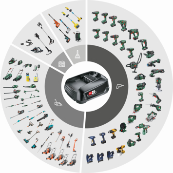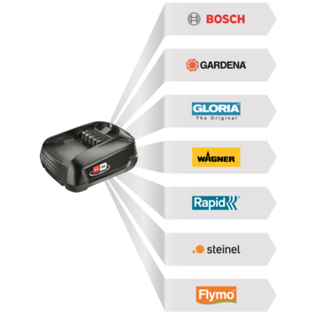 - Bosch 18V accu+lader set voor het 'Power for All' accuplatform, waarbij 1 accu toepasbaar is op het gereedschap uit het 'power for all' accuplatform van Bosch, maar ook o.a. Gardena en Gloria