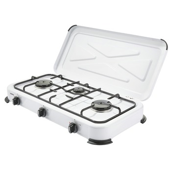 Dit Kooktoestel 3-pits heeft een capaciteit van 2x2,2 kw en 1x0,9 kw branders. Het gasstel is uitgerust met stabiele pannendragers, waar alle maten pannen op kunnen worden gebruikt. Het kooktoestel is voorzien van antislip voetjes, zodat het extra veilig staat. Daarnaast beschikt het gasfornuis over een deksel, zodat dit als extra aanrechtruimte kan worden gebruikt. Het toestel is gemakkelijk te reinigen door de afneembare pannendrager en geëmailleerde onderdelen. Het kooktoestel heeft een verbruik van maximaal 195 gr/h en een gasdruk van 30 mBar. Geschikt voor gebruik met propaan en butaan gas.