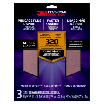 Om nog sneller en beter te schuren gebruik je de 3M Pro Grade Precision Schuurvellen korrel 320 Extra Fijn. Door de combinatie van een NO-SLIP GRIP™-achterzijde en premium mineraaltechnologie die wordt gebruikt in CUBITRON™ II industriële schuurmiddelen hebben deze schuurvellen een langere levensduur. Hierdoor kost schuren ook minder inspanning en heb je ook minder vermoeide handen.