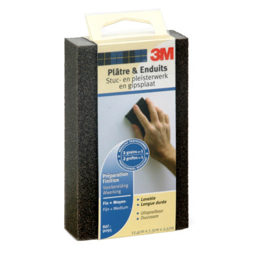Het 3M schuurblok medium fijn/middel voorbereiding en afwerking pleisterwerk is speciaal ontwikkeld voor comfortabel en efficiënt schuren van stuc- en pleisterwerk, gipsplaat en reparatiemiddel. Het schuurblok is uitspoelbaar en herbruikbaar. Je hebt hiermee 2 groftes in één. Medium aan één zijde en fijn aan de andere zijde. Aan één zijde afgerond voor schuren van hoeken. Gebruik eerst een medium korrel om grove oneffenheden te verwijderen en vervolgens een fijne korrel om de muur klaar te maken voor behang of muurverf.