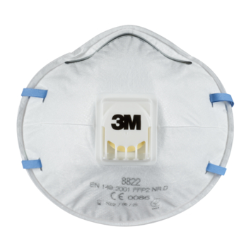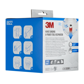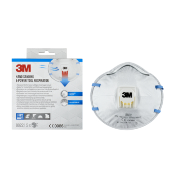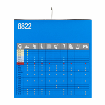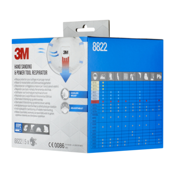 Het 3M Stofmasker voor handmatig en machinaal schuren 8822 is ons geventileerde gelaatsmasker met filter dat is voorzien van een verstelbare neusbeugel, kleurgecodeerde hoofdbanden en het 3M™ Cool Flow™ uitademventiel voor comfortabel dragen. Het is FFP2-geclassificeerd en verkrijgbaar in een verpakking van 5 stuks.