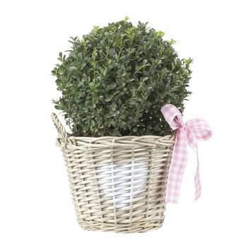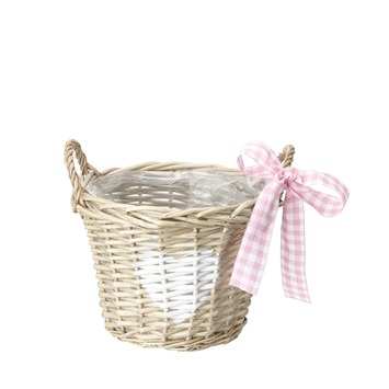 Grijs wilgen "aardappelmand" met rood lintje en opdruk wit hartje