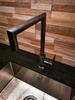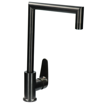 De Absolut keukenkraan Fasso met hendel Grafiet is een blikvanger in je keuken met de hoge hoekige U-vormige uitloop. De strakke vormgeving en grafietkleurige afwerking passen perfect in jouw landelijke of industriële keuken. De kraan kun je ook verkrijgen in zwart of chroom. Met de kraan ga je ook in de tijd mee door de ingebouwde waterbespaarder in de sproeikop. Zo bespaar je op je waterverbruik. Dat is niet alleen goed voor het milieu, maar ook voor je portemonnee. De hoogte van maar liefst 48 cm in combinatie met de 360° draaibaarheid van de uitloop zorgen dat je veel ruimte in je gootsteen hebt. Handig als je een grote pan moet vullen! Met de eenhendelbediening meng je eenvoudig met 1 hand het water naar de gewenste temperatuur. De keramische schijven maken draaien soepel en nauwkeurig en vergen bovendien weinig onderhoud. Ook veeg je kalk eenvoudig met je vingers van de uitloop af doordat vuil en kalk zich niet makkelijk hecht aan de siliconen noppen in de sproeikop. Met de meegeleverde flexibele aansluitslangen en bevestigingsmateriaal sluit je deze kraan eenvoudig zelf aan. Op de kraan krijg je 5 jaar garantie.