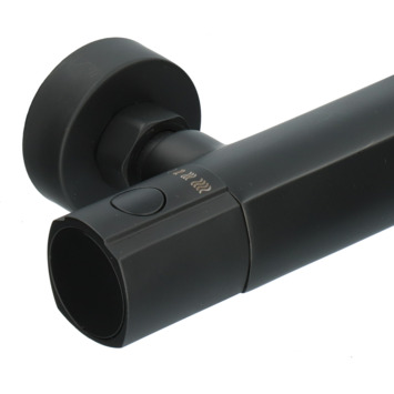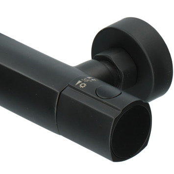 De Absolut thermostatische douchekraan Absi Zwart is stoere kraan met veel gebruikscomfort. De tijdloze vormgeving met de mat zwarte afwerking geeft een robuuste uitstraling en past daarmee perfect in jouw industrieel of landelijk badkamerinterieur. Van deze kraan is ook een thermostatische badkraan verkijgbaar. Met de thermostatische kraan douche je comfortabel doordat de watertemperatuur constant blijft, ook al zijn er wisselingen in waterdruk. De kraan heeft een waterbesparingsknop, die ervoor zorgt dat je de kraan niet direct op de hoogste stand draait. Wens je toch een hardere straal, dan druk je de stopknop in en draai je de kraan verder open. Vooraf kun je ook de gewenste temperatuur instellen. Draaien gaat daarbij soepel en nauwkeurig door de keramische schijven in de kraan, bovendien vergen deze nauwelijks onderhoud. Met de temperatuurbeveiligingsknop op 38°C voorkom je dat je te heet doucht. Veilig voor het hele gezin! Deze kraan is daarmee niet alleen een mooie aanvulling in je badkamer, maar zorgt er ook voor dat je bespaart op je waterverbruik en energiekosten. Goed voor het milieu en leuk voor je portemonnee! De kraan installeer je makkelijk zelf met de bijgeleverde rozetten, S-koppelingen, bevestigingsmateriaal en montagehandleiding. De hartafstand is 15 cm en met de S-koppelingen past de kraan op iedere universele waterleiding. De ingebouwde keerkleppen zorgen ervoor dat vuil water niet terug de leiding instroomt. Besluit je deze kraan te kopen, dan profiteer je ook van 5 jaar fabrieksgarantie.