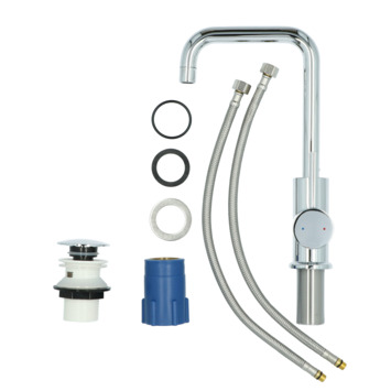 De Absolut wastafelkraan Haiti met hendel en pop-up afvoerplug Chroom is een blikvanger in je badkamer met de hoge hoekige U-vormige uitloop. De strakke, maar toch afgeronde vormen en de chromen afwerking passen perfect in jouw moderne, retro of industriële badkamerinterieur. Deze kraan is ook in mat zwart verkrijgbaar, daarmee kies je altijd een kraan naar jouw smaak! De hoogte van 28 cm in combinatie met de 360° draaibaarheid van de uitloop zorgen dat je veel ruimte in je wastafel hebt. Handig als je je haar wil wassen! Met de eenhendelbediening meng je eenvoudig met 1 hand het water naar de gewenste temperatuur. De keramische schijven maken draaien soepel en nauwkeurig en vergen bovendien weinig onderhoud. Bij de kraanset krijg je ook een afvoerplug; door met je vinger op de plug te drukken klik je deze eenvoudig open of dicht. Met de kraan bespaar je water door de ingebouwde waterbespaarder in de sproeikop. Dat is niet alleen goed voor het milieu, maar ook voor je portemonnee. Door het vereenvoudigde montagesysteem kun je de kraan heel eenvoudig zelf aansluiten. De flexibele aansluitslangen en bevestigingsmateriaal zijn meegeleverd, inclucief een montagehandleiding. Op de kraan krijg je 5 jaar garantie.