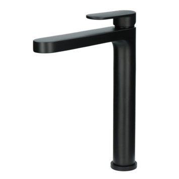 De Absolut wastafelkraan Iode hoge uitloop met hendel en waste Zwart is een elegante aanvulling in je keuken met de hoge L-vormige uitloop. De platte vorm en mat zwarte afwerking hebben een ingetogen uitstraling en passen altijd in jouw interieur, of die nu modern, landelijk of industrieel is. De wastafelkraan kun je ook in een medium model verkrijgen. De hoogte van maar liefst 32 cm zorgt ervoor dat je veel ruimte in je wastafel hebt. Handig als je je haar wil wassen! Met de eenhendelbediening meng je eenvoudig met 1 hand het water naar de gewenste temperatuur. De keramische schijven maken draaien soepel en nauwkeurig en vergen bovendien weinig onderhoud. Bij de kraanset krijg je ook een waste met afvoerplug; deze bedien je met een hendel aan de achterkant van de kraan. Zo hoef je nooit meer met je handen in te heet of vies water om de afvoer open te zetten. Met de meegeleverde flexibele aansluitslangen, bevestigingsmateriaal, waste met wasteinrichting, afvoerplug en montagehandleiding kun je de kraan heel eenvoudig zelf aansluiten. Op de kraan krijg je 5 jaar garantie.