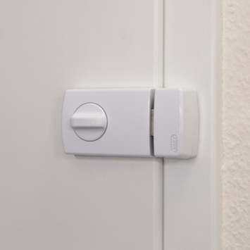 Dit deurbijzetslot Abus 2110 verhoogt je beveiliging tegen inbrekers. Je bevestigt het aan de sluitkant van je naar binnen openende toegangsdeuren; het scharnier op het deurkader of tegen de muur of op het cilindrische deel van de deur. Vanaf buiten kan het slot worden geopend met een geprofileerde veiligheidssleutel. Vanaf binnen kan je het openen via een draaiknop zodat je in dringende gevallen je sleutel niet hoeft te zoeken. Dit deurslot is makkelijk te installeren en dankzij de sluiting met twee omwentelingen beschermt het je deur tegen elke inbraak aan de sluitkant.