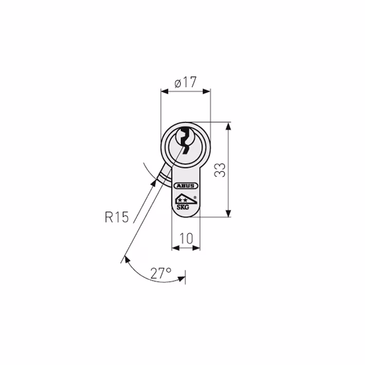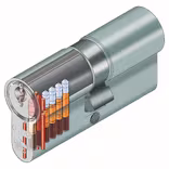 De 2 sterren SKG cilinder van ABUS heeft een gevarenfunctie: aan de buitenzijde bedienbaar als aan de binnenzijde een sleutel in steekt. De cilinder heeft 6 sluitstiften per zijde en een goede boorbeveiliging: 8 hardstalen elementen per zijde. Geleverd met 3 sleutels met langere hals t.b.v. dikte van veiligheidsbeslag.