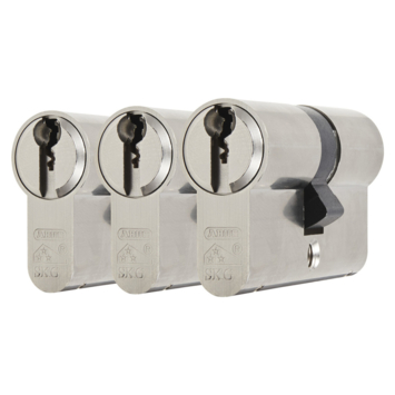 De 3 sterren SKG cilinder van ABUS heeft een gevarenfunctie: aan de buitenzijde bedienbaar als aan de binnenzijde een sleutel in steekt. De cilinder heeft 6 sluitstiften per zijde en een goede boorbeveiliging: 8 hardstalen