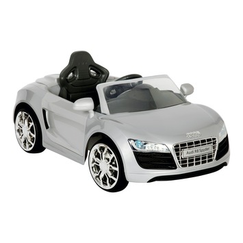Bereidt u voor op een kleine autofanaat! Deze Audi R8 zilver is superrealistisch met zijn heldere voorruit, dashboard en werkende LED koplampen.De motorkap kan geopend worden en laat hieronder een replica van een Volkswagen Beetle motor zien. Door middel van de schakelpook bepaalt uw kind zelf of hij voor- of achteruit zal rijden. Met de afstandsbediening kunt u zelf ook enige controle uitoefenen. Het stuur brengt autogeluiden voort en er zit zelfs een radio met MP3-ingang in. De Audi R8 zilver accu-auto heeft een 6V oplaadbare accu en is geschikt voor kinderen vanaf 3 jaar.