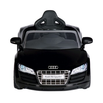 Bereidt u voor op een kleine autofanaat! Deze Audi R8 zwart is superrealistisch met zijn heldere voorruit, dashboard en werkende LED koplampen.De motorkap kan geopend worden en laat hieronder een replica van een Volkswagen Beetle motor zien. Door middel van de schakelpook bepaalt uw kind zelf of hij voor- of achteruit zal rijden. Met de afstandsbediening kunt u zelf ook enige controle uitoefenen. Het stuur brengt autogeluiden voort en er zit zelfs een radio met MP3-ingang in. De Audi R8 zwart accu-auto heeft een 6V oplaadbare accu en is geschikt voor kinderen vanaf 3 jaar.