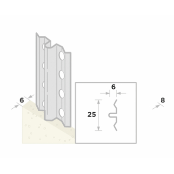 Omdat dit profiel is bedoeld voor een stuclaag van 3 mm helpt het je om de pleister gelijk te verdelen. De vorm zorgt dat je spaan soepel langs de rand beweegt en dat de laag netjes in één lijn blijft. Zo voorkom je dat het oppervlak golft of ongelijk wordt.