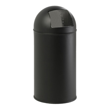 Deze robuste mat zwarte afvalbak met pushdeksel heeft een metalen binnenemmer met een inhoud van 40 liter