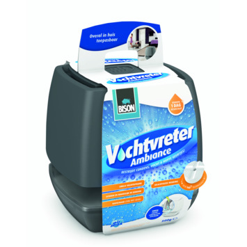 Air Max Vochtvreter® Ambiance Neutral Grey 500 g Bestrijdt condens, vocht en muffe geurtjes in de leefruimte. Optimale vochtopname dankzij uniek luchtcirculatiesysteem. Uitermate geschikt voor gebruik in de woonkamer, slaapkamer, badkamer, toilet, etc.