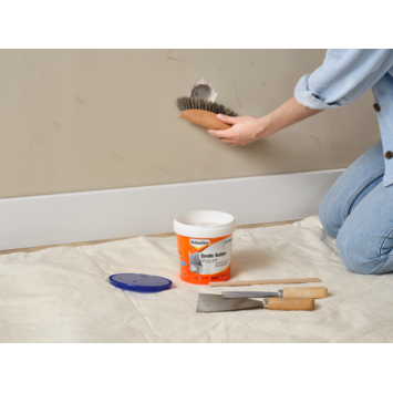 Met de Albastine Grote Gatenvuller kunt u grote gaten en scheuren in één keer vullen in zowel binnen- als buitenmuren. Hiernaast kunt u dit vulmiddel ook gebruiken voor het dichten van leidingdoorvoeren en sleuven en voor het eenvoudig zetten van hoeken. De Grote Gatenvuller is gebruiksklaar en verkrijgbaar in een pot van 1 liter. Dit vulmiddel is schroef-, spijker- en boorvast en heeft een uitstekende hechting op steen, pleister- en stucwerk, beton, gipsplaten en polystyreen. Grote Gatenvuller is goed schuurbaar, waardoor de reparatie superglad af te werken is.