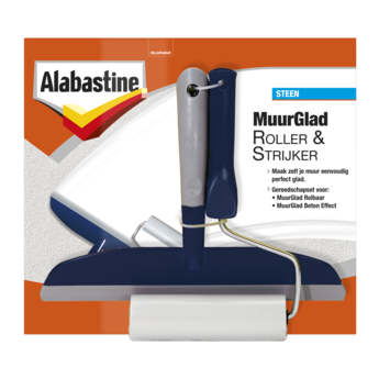 De Alabastine MuurGlad roller en strijker is een set gereedschap speciaal gemaakt om muren glad te maken met Alabastine MuurGlad producten. De set bevat een roller van 35 centimeter breed waarmee je de MuurGlad gemakkelijk aanbrengt en verdeelt. Daarnaast zit er een strijker bij waarmee je de muur mooi glad afwerkt. Deze set is bedoeld voor het verwerken op steenachtige ondergronden. De roller heeft een synthetische schuimvacht en is geschikt voor watergedragen sierpleisters. Met deze set zorg je zelf voor een gladde basis om te schilderen of behangen.