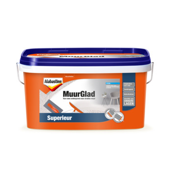 Alabastine MuurGlad superieur 5 liter kan één laag repareren en egaliseren. Ook is het mogelijk om een structuurwand makkelijk glad te maken met deze egaliseerpasta. Voor deze klus is er een eenvoudig te gebruiken gereedschapset ontwikkeld, de Alabastine Spaan en Strijker.