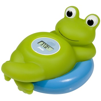Met de Bad(kikker) Thermometer meet u snel en nauwkeurig de watertemperatuur van het badwater van uw baby. De ideale watertemperatuur van een babybad ligt tussen de 36ºC en 39ºC. U legt de Badthermometer in het water en leest vervolgens op het lcd-display af welke temperatuur het badwater heeft. Uiteraard is de thermometer dan ook 100% waterbestendig. Bovendien heeft de Badkikker Thermometer alleen maar ronde vormen en zitten er geen scherpe randen aan. Zo blijft de veiligheid van uw baby gewaarborgd.