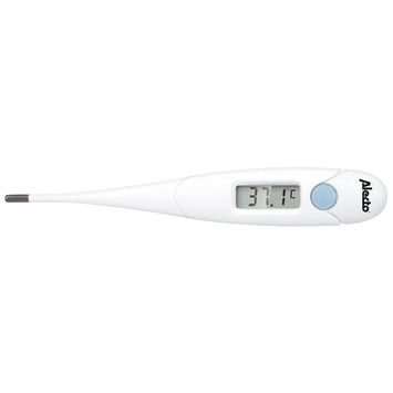 De Thermometer basis meet snel en nauwkeurig uw lichaamstemperatuur. Binnen 10 seconden verschijnt uw temperatuur op een groot en duidelijk display. Hierdoor biedt deze koortsthermometer uitkomst als uw minder goed ziet. De thermometer geeft bij een verhoogde temperatuur een koortsalarm. Daardoor bent u direct gewaarschuwd als dat nodig is. Doordat de Thermometer basis uw laatst gemeten temperatuur onthoudt weet u direct of uw koorts gezakt of gestegen is. De thermometer is ook nog eens waterbestendig en is daardoor goed te gebruiken in de badkamer. Met de Thermometer basis kiest u voor een betrouwbaar hulpmiddel om uw koorts te meten. Wordt geleverd met opbergdoosje, batterij en duidelijke gebruiksaanwijzing.