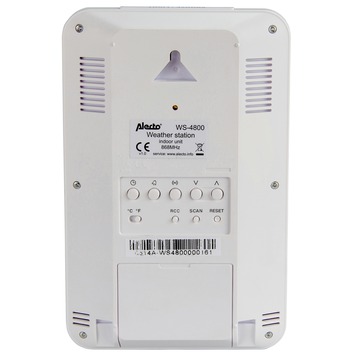 Ontdek Alecto WS-4800 Professioneel weerstation. Dit weerstation biedt een schat aan informatie over het weer en de weersvoorspelling, allemaal weergegeven op een helder display. De gegevens die je kunt aflezen zijn onder andere: tijd, datum, maanstand, geanimeerde weersvoorspelling, comfortindicatie, luchtdruk, neerslaghoeveelheid, windrichting, windsnelheid, binnen- en buitenluchtvochtigheid, binnentemperatuur, buitentemperatuur en gevoelstemperatuur. Hiermee ben je volledig geïnformeerd over de lokale weersomstandigheden.