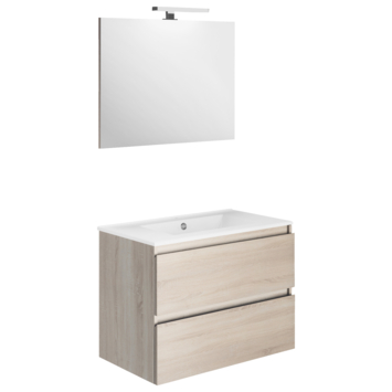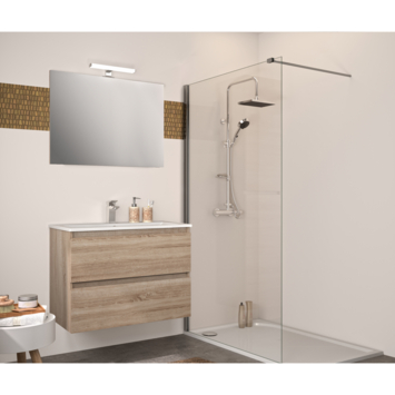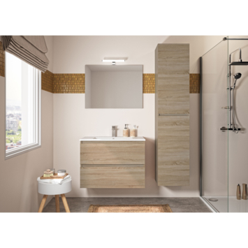 Het badkamermeubel Bazil van Allibert is een compleet meubel in de kleur eik hamilton. Het meubel is 80cm breed, maar is ook verkrijgbaar in 60cm breed. Allibert badmeubelset Bazil bestaat uit een onderkast, een wastafel en spiegel en LED-verlichting. Dit meubel heeft twee laden met een enkele sifon-uitsparing. De laden zijn voorzien van een softclose systeem. Liever deuren? Dit meubel is ook verkrijgbaar met twee deurtjes.