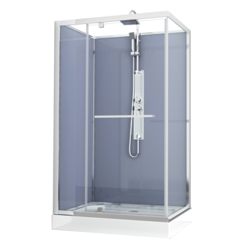 Met deze complete douchecabine Anapurna van Allibert haal je in één keer alles in huis om heerlijk te genieten van een ontspannende douche. Wel zo gemakkelijk! Dit dit extra ruime hoekmodel van 90 x 120 cm heeft een luxe en moderne uitstraling. De achterwanden zijn in het grijs uitgevoerd en de cabine is afgewerkt met een mat aluminium profiel. Met een royale douchekolom, hydromassagestralen en een in 3 standen verstelbare handdouche pas je jouw douchesessies snel en eenvoudig aan naar jouw specifieke wensen. Dankzij de speciale antislip voorziening stap je veilig via de draaideur de cabine in en uit. Op het veiligheidsglas is een special coating aangebracht tegen kalk en zeepresten. Hierdoor maak je de wanden gemakkelijk schoon en blijft jouw douchecabine als nieuw!