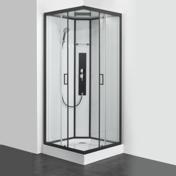 Allibert complete douchecabine Uyuni met schuifdeur zwart hoekmodel 90 x 90 cm