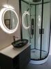 - De handige schuifdeur bespaart veel ruimte in kleinere badkamers
