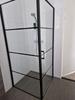 Het glas is omlijst met aluminium profielen, die je aan de muur monteert. De zwaaideur met strepen heeft een afmeting van 200 cm hoog en 90 cm breed en is linksdraaiend (de scharnieren zijn aan de linkerzijde geplaatst). De deur sluit je zacht met ingebouwde magneetjes in het frame.