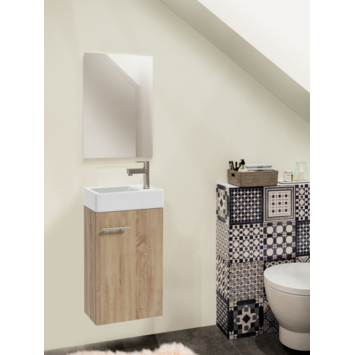 Allibert fonteinmeubel Mike - eik - 40 cm - met porseleinen wastafel, compact ontwerp met grote opslagcapaciteit