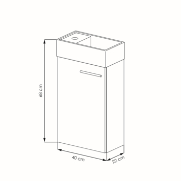 Degelijk en ruim kastje wat eenvoudig in elkaar is te zetten. Ruim genoeg om naast de kraan nog een fles met handzeep te zetten. De porseleinen wasbak heeft een klein waterkerend randje waardoor een zeepfles ook eenvoudig blijft staan