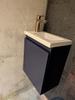 De wastafel sluit het ondermeubel mooi af aan de bovenzijde. Het voorgeboorde gat voor de kraan zit aan de zijkant van de wastafel. Heb je de wastafel eenmaal geplaatst in het onderkastje, dan heeft het een hoogte van 3,2 cm. De breedte van de wastafel is 40,2 cm en de diepte 25,2 cm: groot genoeg om je aan te kunnen wassen en je tanden te poetsen. En als je per ongeluk iets hards in de wastafel laat vallen, scheurt een polybeton wastafel minder snel dan een keramieken variant.