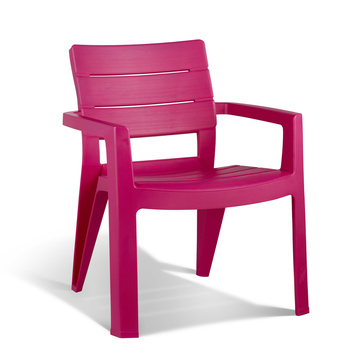 De felroze Ibiza tuinstoel vrolijkt elke tuin op. Het trendy design is heel sprankelend en door de ‘houtlook’ krijgt de stoel een luxe uitstraling. Het maakt de stoel ook heel goed te combineren met een houten tuintafel. Dankzij de rugleuning en armleuningen is de Ibiza tuinstoel erg comfortabel.