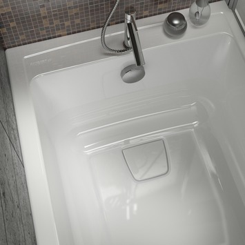Het bad Sylene 180 x 80 van Allibert is een multifunctioneel, modern bad met een douchezone en een brede badrand waarop jij je favoriete badproducten kan uitstallen. Het bad is gemaakt uit Toplax: een duurzaam materiaal dat tegen een stootje kan. Daarnaast heeft het Sylene bad een dubbele rugzijde, zodat je met z'n tweeën kan baden. Praktisch met de kids, romantisch met je lief. Meegeleverde accessoires: moderne afvoerdekplaat in dezelfde kleur als het bad en poten. Combineer met de badpanelen en het kraanwerk van je keuze, dat je ook in de webshop van GAMMA vindt. Goed om te weten: het bad is verkrijgbaar in verschillende afmetingen.