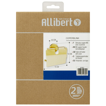 De Allibert toiletrolhouder Coperblink met klep Goud is een stijlvolle wc-rolhouder met klep, die je gemakkelijk aan de muur kan bevestigen in ieder toilet. De goudkleurige afwerking geeft een luxe uitstraling aan je toiletruimte. Naast de gouden kleur is deze WC-rolhouder ook verkrijgbaar in de kleuren koper, RVS en chroom. Kies dus de kleur die het beste bij jou past! Besluit je deze set te kopen? Dan profiteer je van 2 jaar fabrieksgarantie.