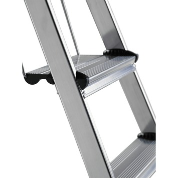 De dubbele trede geeft extra stevigheid tijdens het klussen.