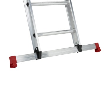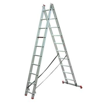 Een trap die je als schuifladder tegen je huis kunt zetten én als A-ladder kunt gebruiken, dat is de Altrex Reformladder All Round 2 x 10 Treeds. Deze ladder is gemaakt van aluminium en daarom licht van gewicht (10.1 kg), je verplaatst hem dus met gemak. Door zijn speciale vorm zit de D-sport stevig in het frame en biedt het je dankzij zijn diepte van 32 mm een breed sta-oppervlak. Je herkent een echte Altrex aan zijn rode sport, die je precies aangeeft tot op welke hoogte je nog verantwoord kan werken. Dankzij de opsteekhaak met veiligheidspal schuift de trap niet zomaar in, wel zo veilig. De maximale draagkracht is 150 kg. Kortom: een goede keuze voor zowel de thuisklusser als de professional.