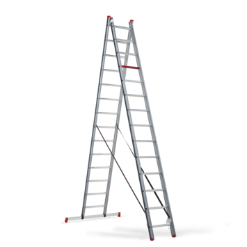 Een trap die je als schuifladder tegen je huis kunt zetten én als A-ladder kunt gebruiken, dat is de Altrex Reformladder Atlantis 2 x 14 Treeds. De kenmerkende blauwe coating zorgt niet alleen voor een mooi uiterlijk, het zorgt er eveneens voor dat de ladder vuilafstotend is. De opsteekhaak met veiligheidsgrendel voorkomt dat de reformladder inschuift terwijl je hem gebruikt. De drukvaste spreidbeveiliging voorkomt ditzelfde probleem wanneer hij in de A-stand staat. Dankzij het lichtgewicht aluminium (16 kg) is de Atlantis reformladder makkelijk te verplaatsen. Het stavlak met antislipprofiel geeft je meer ruimte en daarmee meer stacomfort. Kortom: een goede keuze voor zowel de thuisklusser als de professional.
