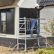 Met Module 1 + 2 (werkhoogte 3.80 meter), Module 1 + 2 + 3 (werkhoogte 5.80 meter), Module 1 + 2 + 3 + 3 (werkhoogte 7.80 meter) bouw je de kamersteiger tot grote hoogte.
