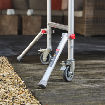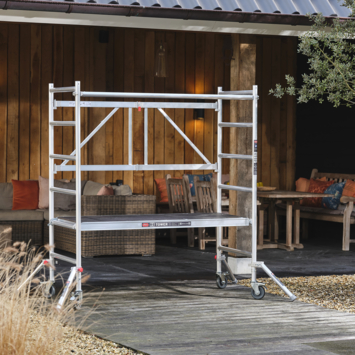 De RS TOWER 34 is een lichtgewicht kamersteiger. Geschikt voor buiten. Ideaal voor binnen door zijn compacte formaat. Wil je ooit hoger komen? Het systeem is modulair. Met module 2 en 3 bouw je hem op tot wel 7.80 werkhoogte. Deze kamersteiger is gemaakt voor de intensieve klusser. Ook is het toegestaan de steiger voor professionele klussen te gebruiken. De maximale belasting bedraagt 150 kg/m2.