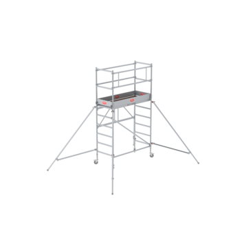 De RS TOWER 34 is een lichtgewicht kamersteiger. Geschikt voor buiten. Ideaal voor binnen door zijn compacte formaat. Wil je ooit hoger komen? Het systeem is modulair. Met module 2 en 3 bouw je hem op tot wel 7.80 werkhoogte. Deze kamersteiger is gemaakt voor de intensieve klusser. Ook is het toegestaan de steiger voor professionele klussen te gebruiken. De maximale belasting bedraagt 150 kg/m2.