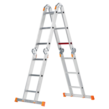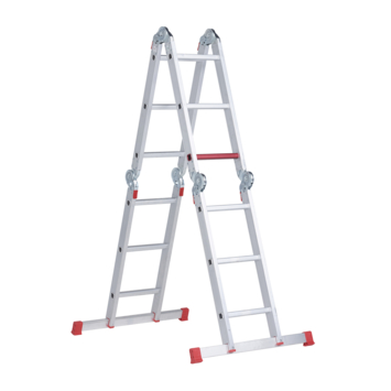 Een multifunctionele en lichtgewicht vouwladder, dat is de Altrex Vouwladder Varitrex plus 4 x 3 Treeds. Je kunt deze ladder in zowel A-stand, ladderstand, platformstand als een muurafhoudstand zetten, waardoor hij te gebruiken is voor bijna iedere klus in huis. Deze ladder is gemaakt van aluminium en daarom licht van gewicht (14.5 kg), je verplaatst hem dus met gemak. Je herkent een echte Altrex aan zijn rode sport, die je precies aangeeft tot op welke hoogte je nog verantwoord kan werken. Dankzij de stabiliteitsbalken met robuuste antislipvoeten staat de trap stevig op de grond, wel zo veilig. De maximale draagkracht is 150 kg. Kortom: een echte alleskunner voor zowel de thuisklusser als de professional.