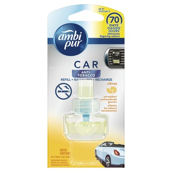 De Ambi Pur Auto Luchtverfrisser 'Tabacco' NV is een navulverpakking waarmee u uw auto opnieuw fris laat ruiken. De navuller met tabaccogeur past in de oorspronkelijke houder van uw Ambi pur-luchtverfrisser. Met de clip bevestigt u de navulverpakking stevig op het ventilatierooster. De Ambi Pur Auto Luchtverfrisser 'Tabacco' NV is een van de veel verschillende geuren uit het assortiment van Ambi Pur. Met een navulverpakking rijdt u tot wel 70 dagen zorgeloos in een frisse auto rond. Dankzij het vloeibare parfum van de Ambi Pur Auto Luchtverfrisser 'Tabacco' NV ruikt uw auto fris en aangenaam.