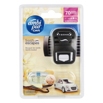 De Ambi Pur Auto Luchtverfrisser 'Vanilla' laat uw auto heerlijk naar vanille geuren. Met deze luchtverfrisser blijft uw auto wekenlang verlost van onaangename luchten. Het sterke parfum zorgt voor langdurige frisheid. Houdt u van vanillegeur, kies dan voor de Ambi Pur Auto Luchtverfrisser 'Vanilla'. De autoverfrisser monteert u met een clip op het ventilatierooster, zodat deze stevig blijft zitten en de geur optimaal kan verspreiden. Met de Ambi Pur Auto luchtverfrisser 'Vanilla' geniet u dan ook van iedere autorit.