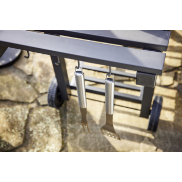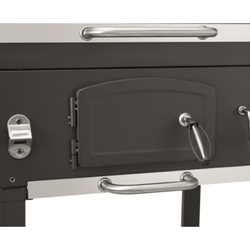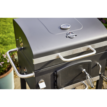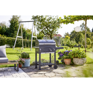 De American houtskool BBQ Jaxon 2.0 is de perfecte keuze voor grote barbecues met vrienden of familie. Het kookoppervlak van 57 x 42 cm biedt ruimte om voldoende gerechten tegelijkertijd te bereiden. Of je nu vlees, vis of groenten grilt, deze barbecue zorgt voor een gelijkmatige garing door de combinatie van houtskool of briketten. Dankzij de handige, stevige wielen is de BBQ makkelijk te verplaatsen, zodat je de houtskool BBQ naar de perfecte plek in de tuin rolt. Met afmetingen van 104,5 x 63 cm is hij groot genoeg voor een uitgebreide barbecue.