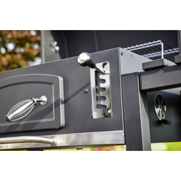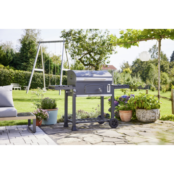 Met de American BBQ Jaxon XL tover je jouw tuin om tot een echte buitenkeuken. Dankzij het royale kookoppervlak van 70 x 46 cm bereid je moeiteloos een flinke hoeveelheid eten tegelijk. Perfect voor gezellige avonden met vrienden of familie. Of je nu kiest voor houtskool of briketten, deze barbecue zorgt voor een heerlijke grillsmaak. Het stevige metalen frame is niet alleen sterk, maar dankzij de wieltjes ook makkelijk te verplaatsen. Verschuiven naar een betere plek? Geen probleem! Met deze houtskoolbarbecue zet je zonder gedoe een heerlijke maaltijd op tafel.