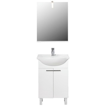 Het Amy badkamermeubel hooglans wit 55cm is een functioneel en stijlvol meubelstuk met een moderne look. De set bestaat uit een waskom, een spiegel en een handig onderkastje met aluminium handgrepen en poten. Dankzij de hoogglans witte kleur en het strakke design geeft het meubel een moderne look aan uw ruimte. De spiegel is bovendien voorzien van sfeervolle halogeen verlichting. Kortom, met het Amy badkamermeubel haalt u een stijlvol en handig meubelstuk in huis.