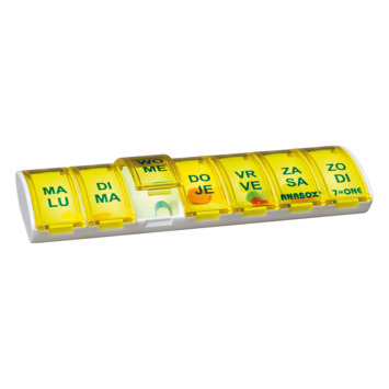 Met de Anabox medicijndoos week houdt u goed zicht op uw medicijnen. Voor elke dag van de week heeft deze doos een apart vakje. Hierdoor ziet u direct of u uw geneesmiddelen nog moet innemen. De Anabox medicijndoos week is verkrijgbaar in verschillende kleuren.
