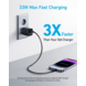 De Anker 323 USB-C dual snellader zwart is een compacte oplader waarmee je twee apparaten tegelijk kunt opladen. Dankzij de 33W USB-C Power Delivery-poort laad je telefoons, tablets en andere apparaten tot drie keer sneller op dan met een standaardoplader. Naast de USB-C-poort heeft de lader ook een USB-A-poort, zodat je flexibel verschillende apparaten kunt aansluiten.