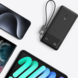 Je sluit tot drie apparaten tegelijk aan via de USB-C en USB-A poorten. De USB-C poort ondersteunt 20W Power Delivery en er is een speciale druppellaadmodus voor kleinere apparaten zoals oordopjes. Dankzij het compacte formaat past de powerbank eenvoudig in je zak of tas, waardoor hij praktisch is voor dagelijks gebruik en onderweg.